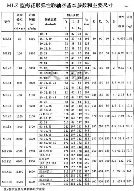 LMD(原MLZ)型梅花形彈性聯軸器基本性能參數和主要尺寸