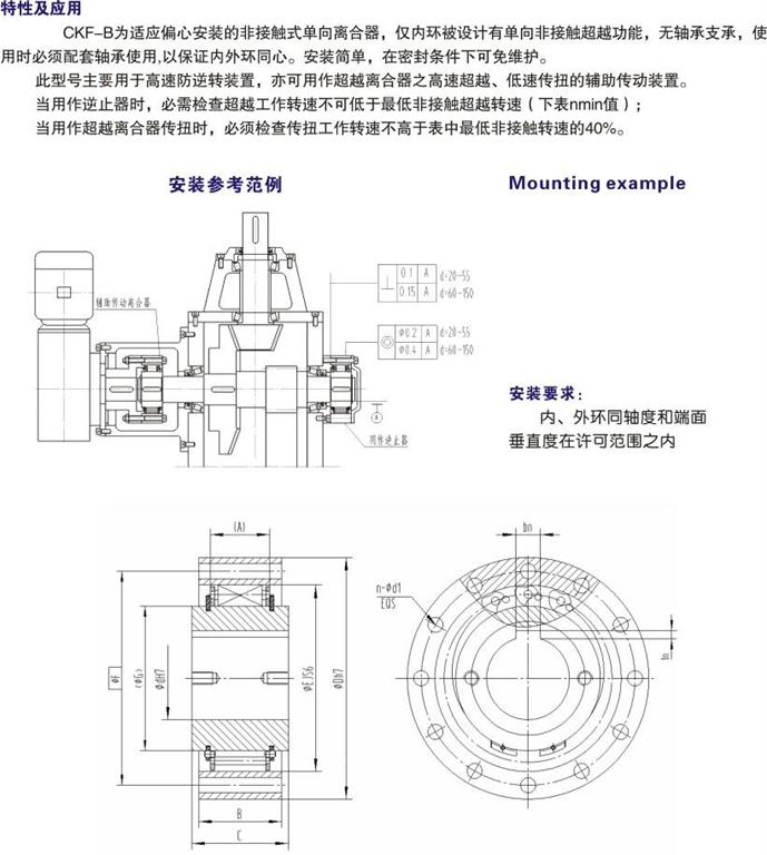 CKF-B為適應偏心安裝的非接觸楔塊式單向離合器。