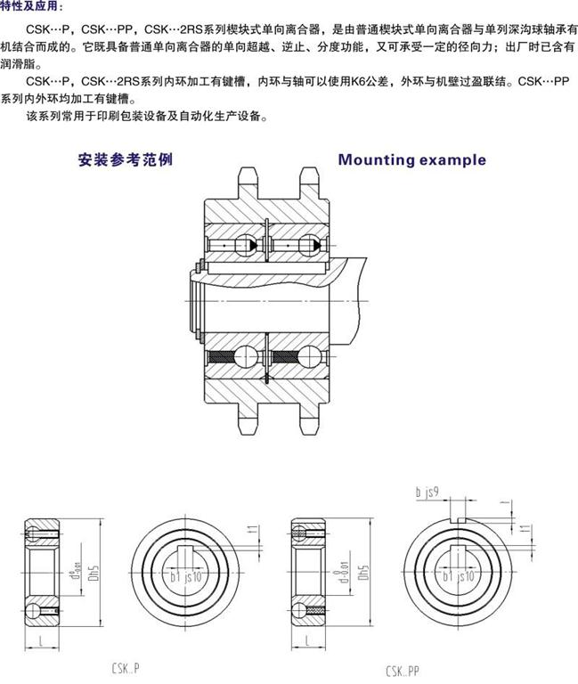 CSK系列楔塊式單向離合器,是由普通楔塊式單向離合器與單列深溝球軸承有機結合而成的。