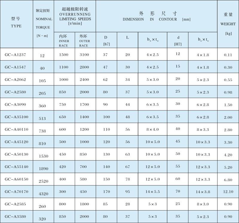 單向離合器-天碩聯軸器GC-A 滾柱式單向離合器-天碩聯軸器(上海)有限公司