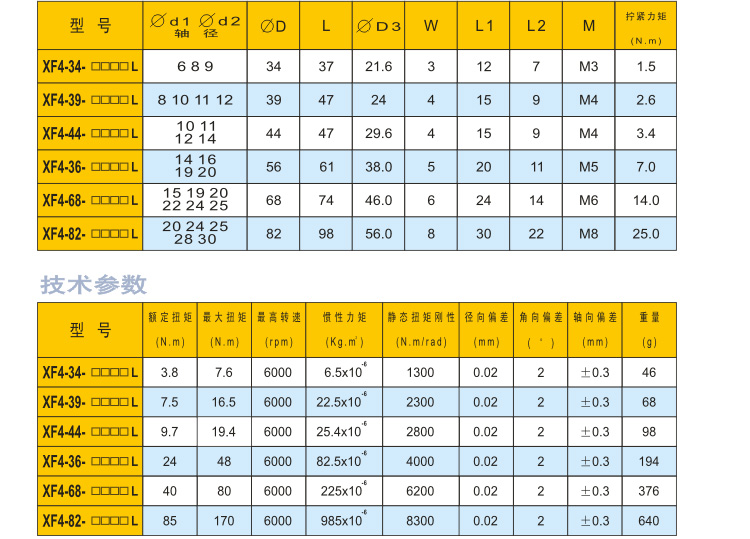 多節(jié)夾緊--法蘭膜片微型聯(lián)軸器的特點:膜片型彈性聯(lián)軸器,高靈敏度,高扭矩剛性,零回轉間隙,順時針和逆時針回轉特性_相同。