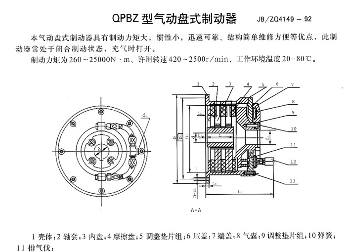 QPBZ型氣動盤式制動器詳細內容介紹