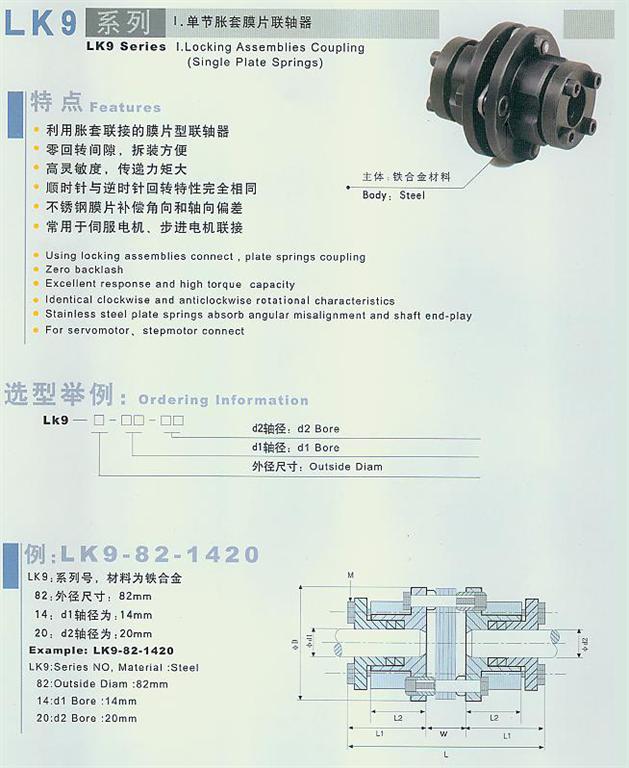 脹套--法蘭膜片聯(lián)軸器的特點:膜片微型聯(lián)軸器利用脹套聯(lián)接的膜片型聯(lián)軸器,零回轉(zhuǎn)間隙,拆裝方便,高靈敏度,傳遞力矩大,順時針與逆時針回轉(zhuǎn)特性_相同。